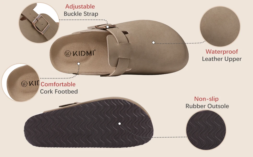 Comwarm Classic Men's Leather Clogs Slippers Fashion Cork Slippers Women Clogs Mules Outdoor Beach Sandals Casual Slides 2024